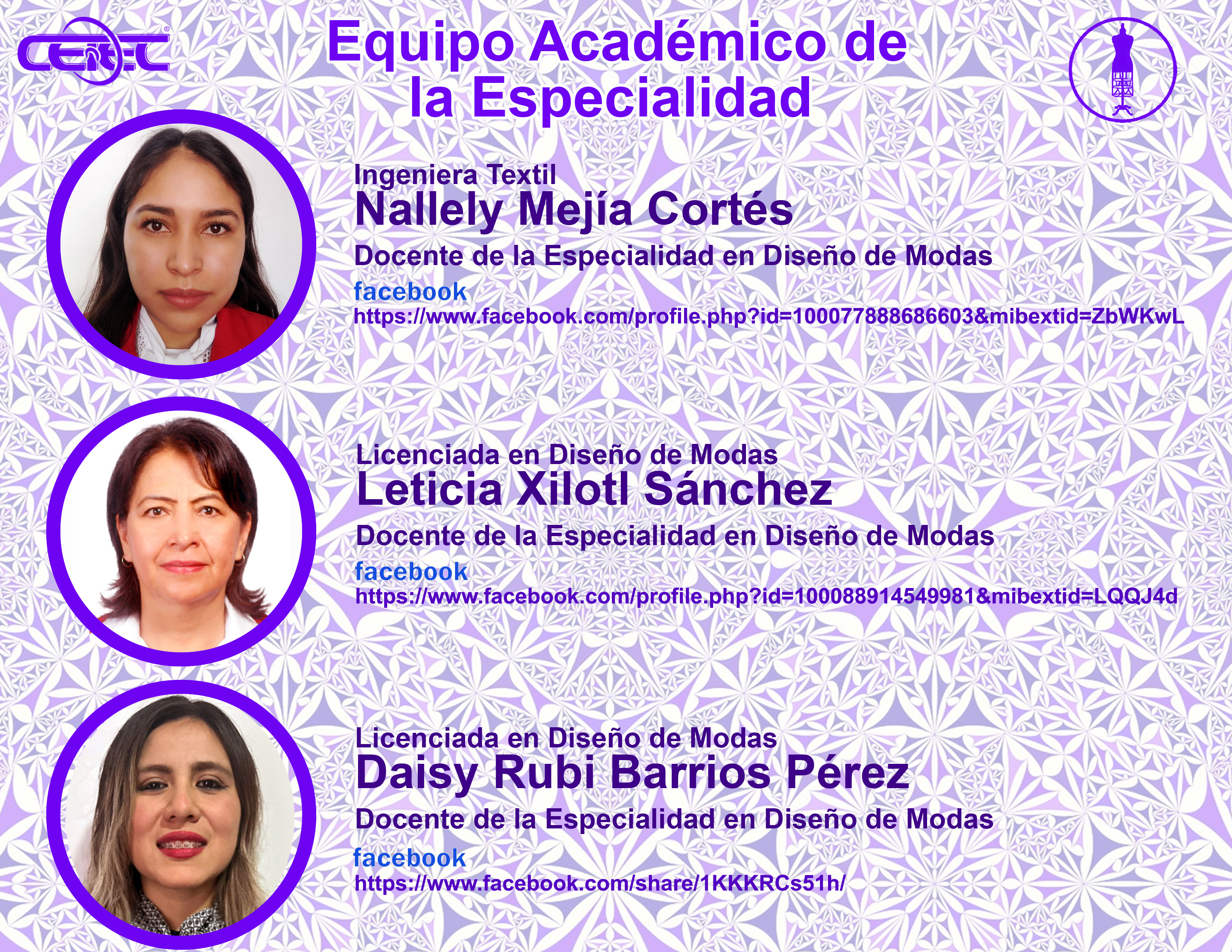 El equipo académico de la especialidad del Diseño de Modas, esta calificado y especializado en cada una de las unidades de enseñanza que integran la especialidad